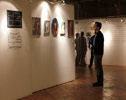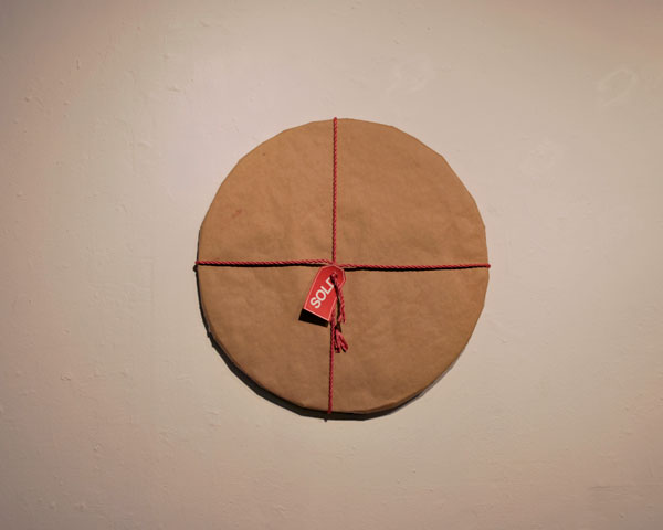 The works in this series are paintings stetched on canvas that have been covered with wrapping paper and hung in the gallery. A red dot indicating a sale was placed on the information label. They were displayed during the First Friday Gallery hop at the Nan Boynton Memorial Gallery in Tallahassee Florida. 2008